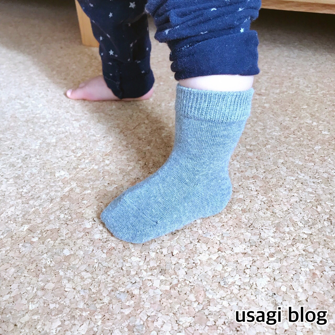 こーくん用の靴下なんですが、大人用と同じで足首部分が直角になっています。