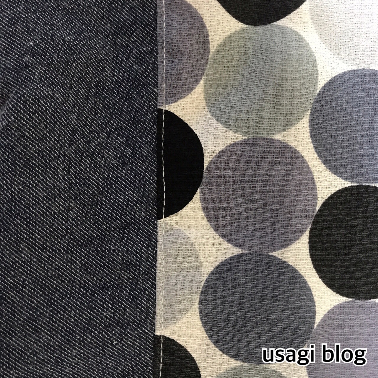 布は裁断ミスなどを考えて長めに買っていたので、急遽ドット布の残りをつなぎ合わせることに。