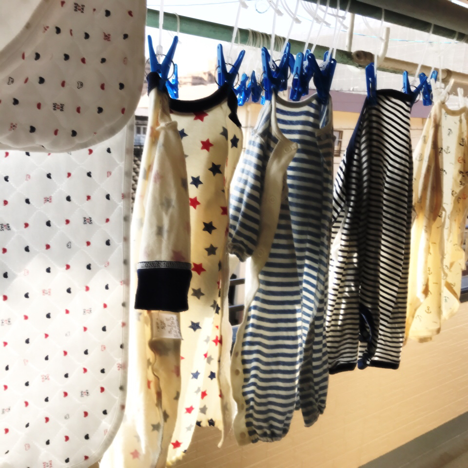 水通しをしたのは、各種洋服、ガーゼタオル、ガーゼハンカチ、おくるみ、汗取りパッドです。
