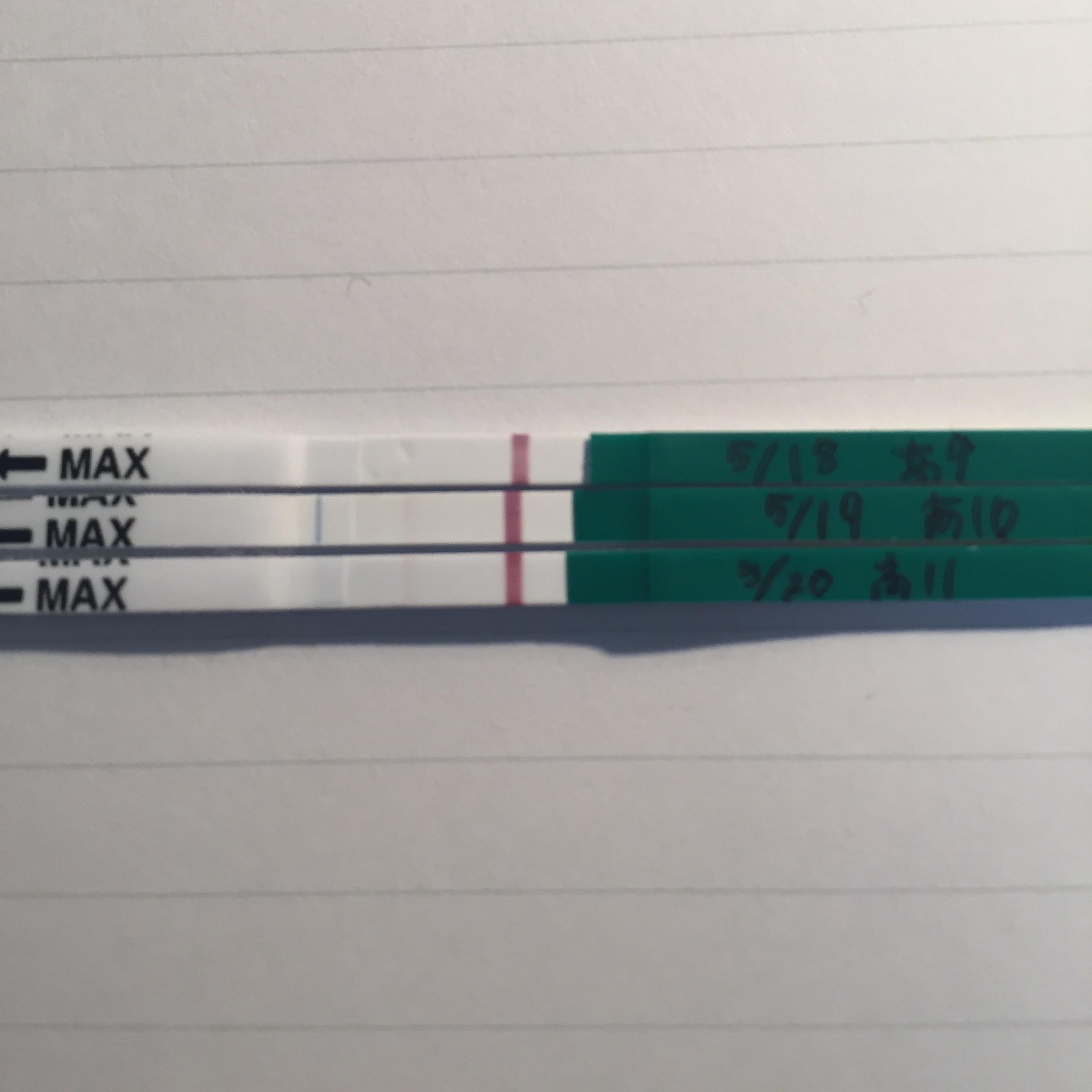 妊娠検査薬がどう変化していくか確認したかったのですが、できず残念です。