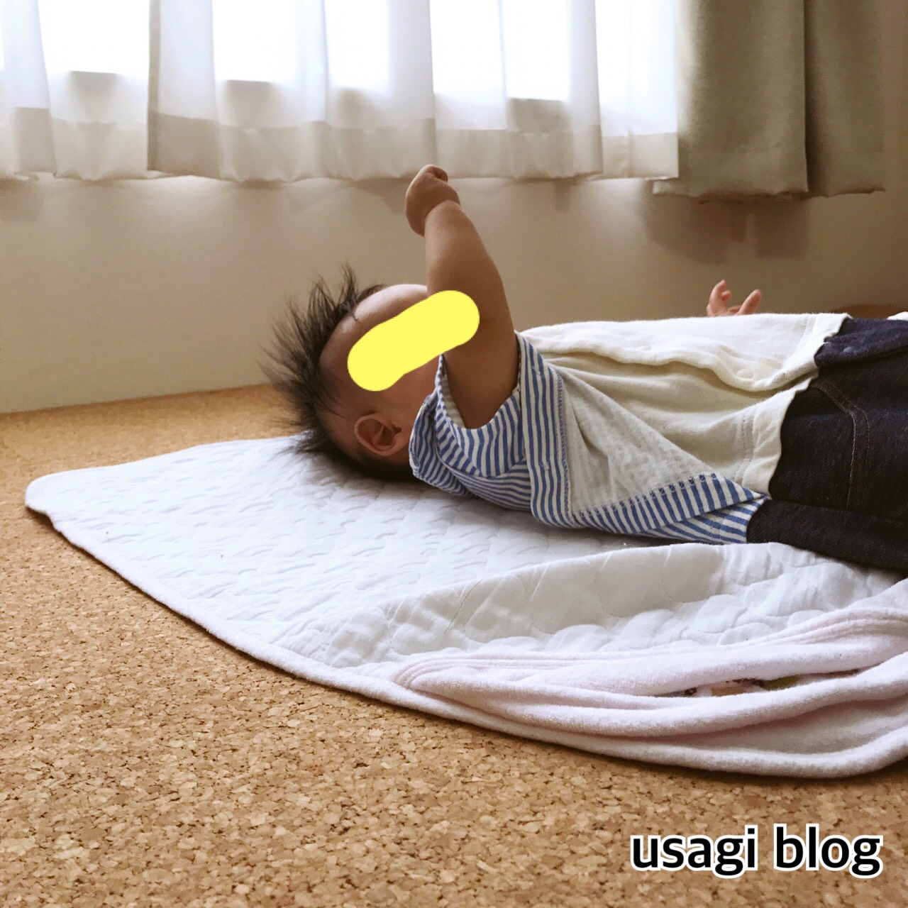 いつもうつぶせになるとほっぺたを床につけて気持ちよーく指しゃぶりをするこーくんですが…