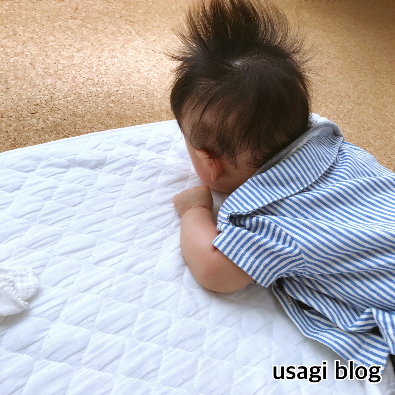 最近気づいたんですが、こーくんうつぶせのときに、顔が右を向いていても左に向きを自分で変えられます。