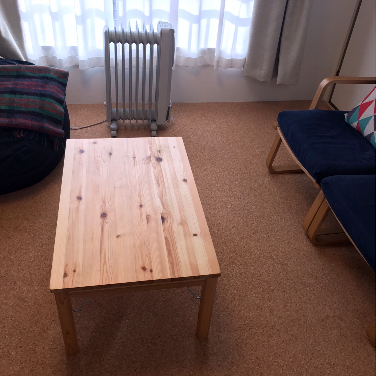 居間がテーブル&椅子生活だったので、コルクマットを敷いて床生活へ切り替えることに。