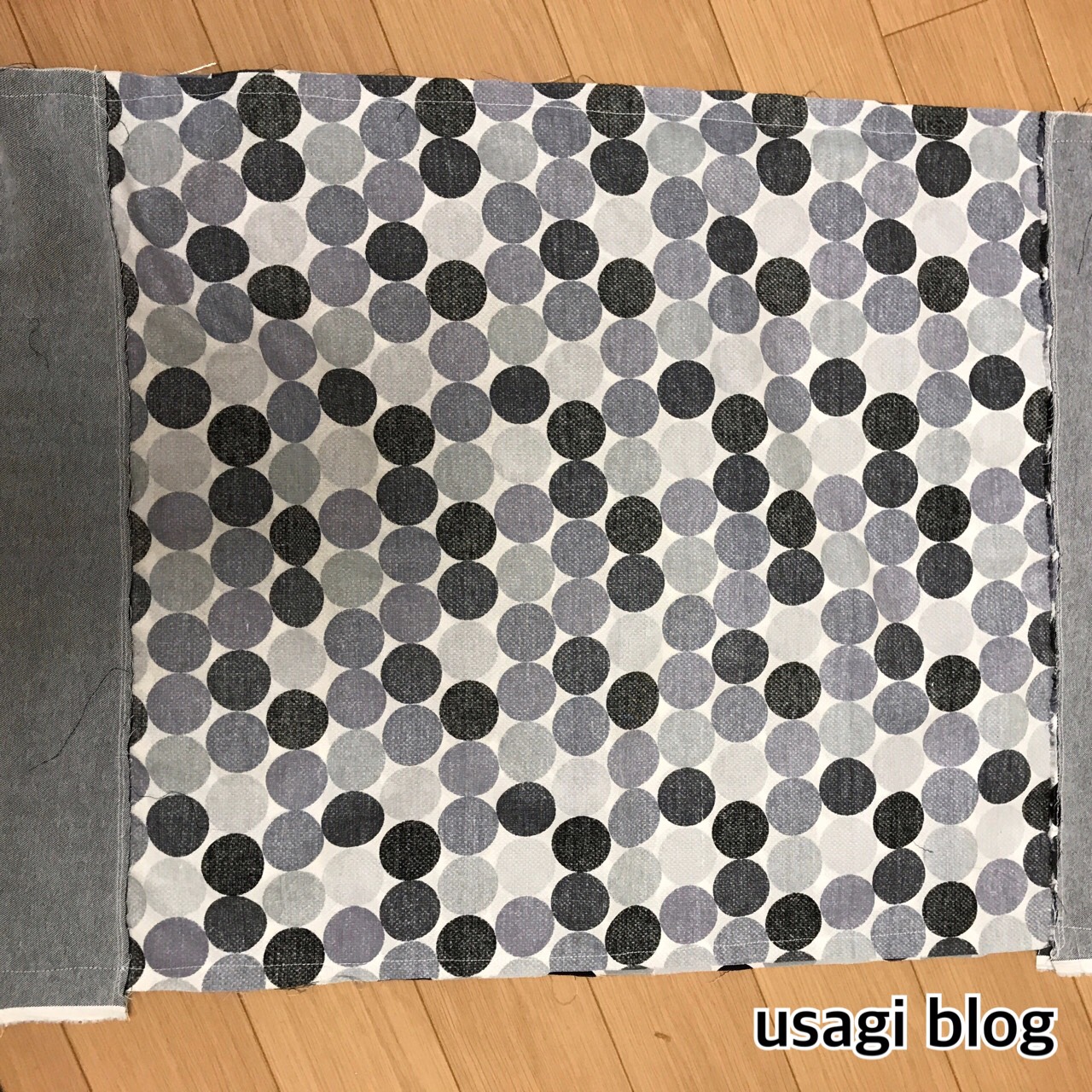布は裁断ミスなどを考えて長めに買っていたので、急遽ドット布の残りをつなぎ合わせることに。