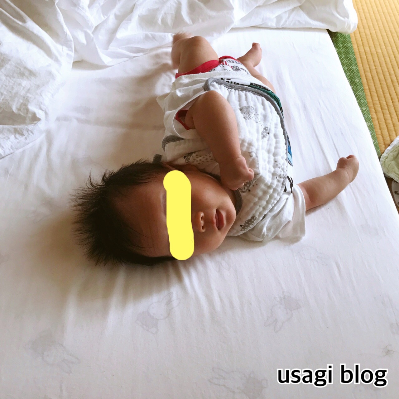 起きている間はすぐ寝返りしようと転がるようになり、行動範囲が一気に広がりました。