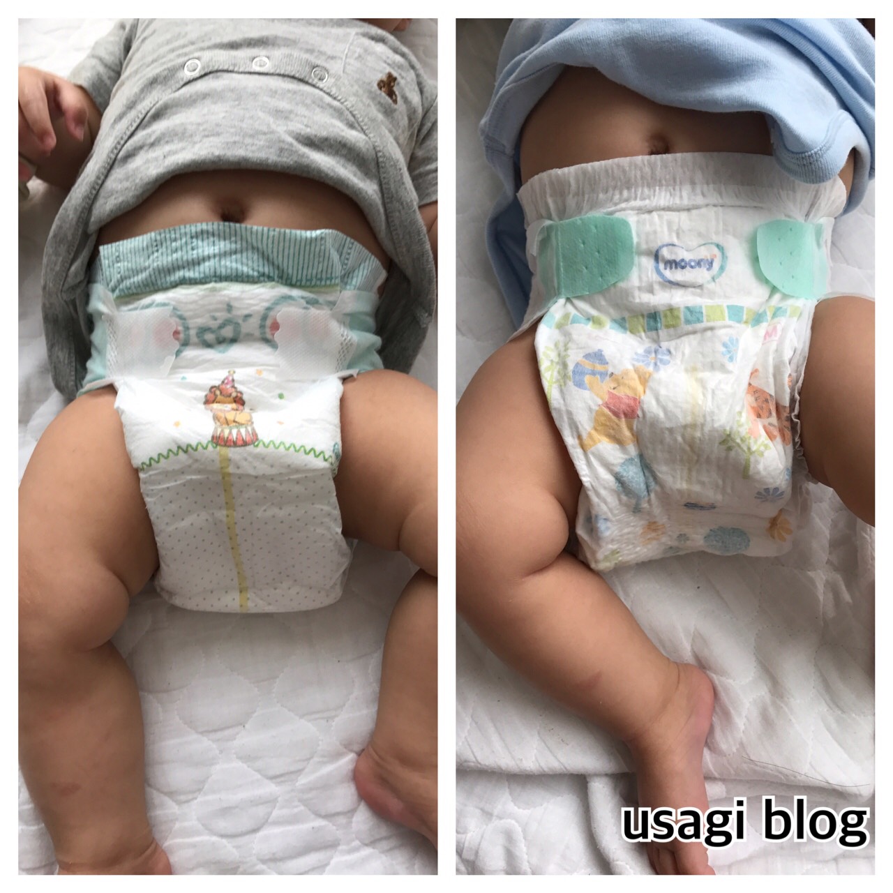 どちらも朝イチのおしっこパンパン状態なんですが、ムーニーのラインが驚くほどわかりにくい\(^o^)/