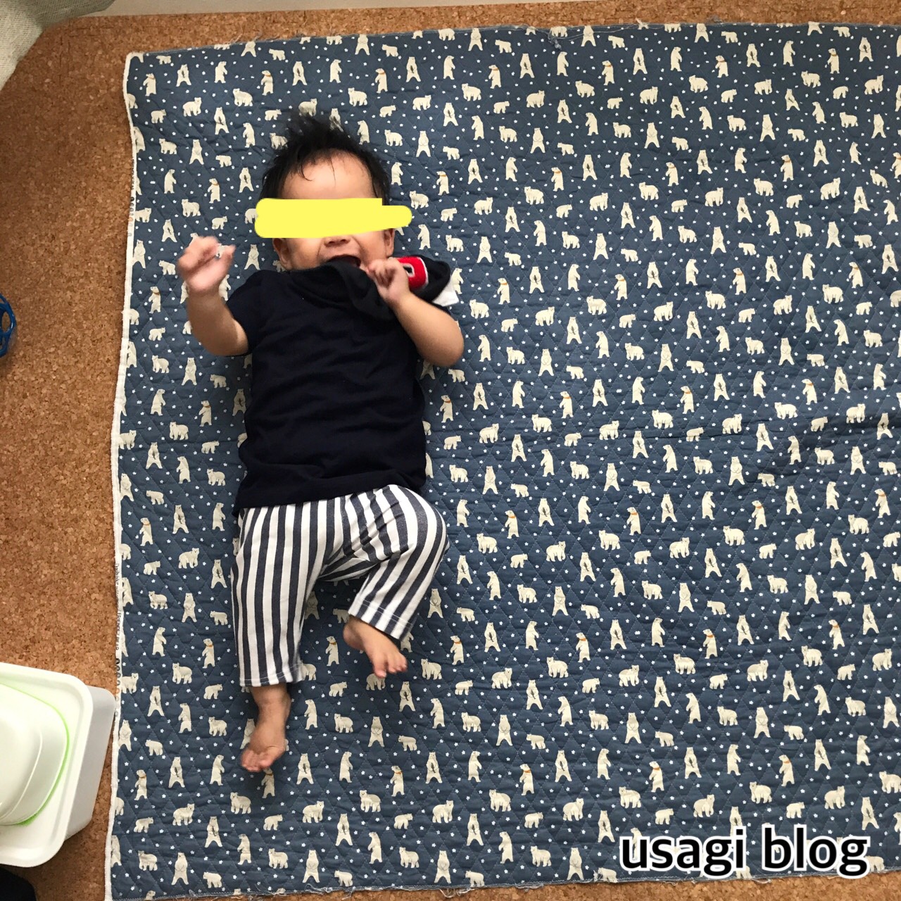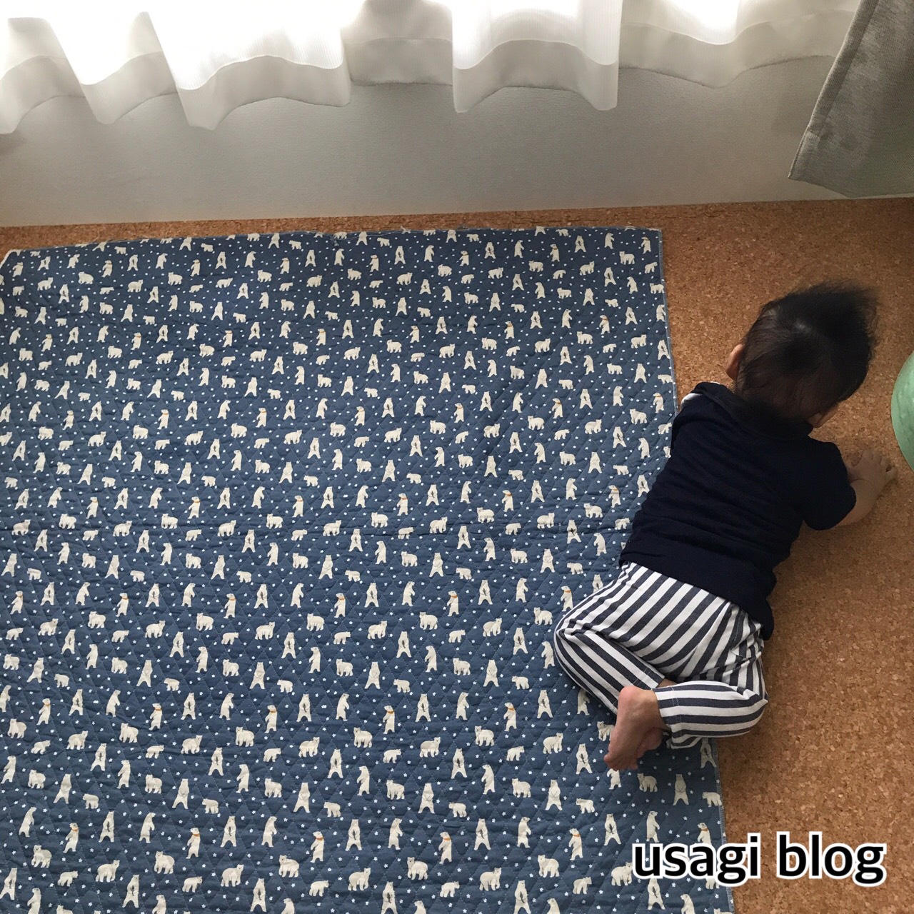 あと数ヶ月もすれば、今度はハイハイもするようになるんでしょうし、これ以上下に敷くものは大きくなくてもいいかなと思っています。