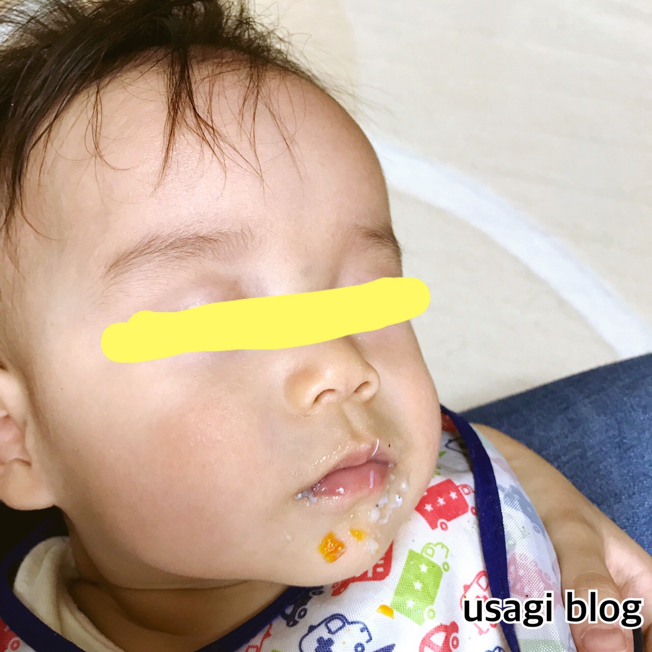 離乳食中、あまりにも食べるスピードが遅くて、おかしいなと思っていたら寝落ちしました\(^o^)/