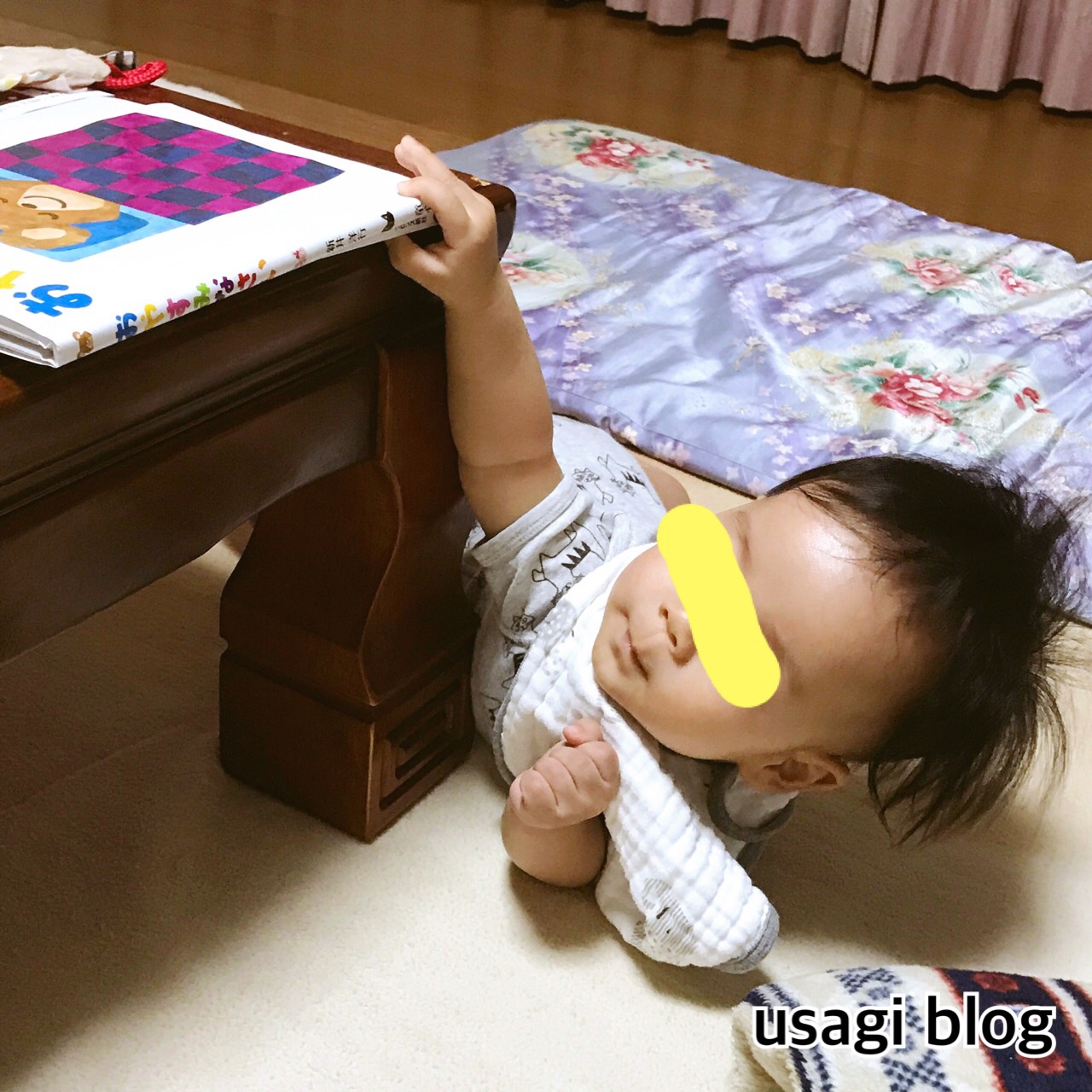 昨日は机の上の絵本に手を伸ばす始末\(^o^)/